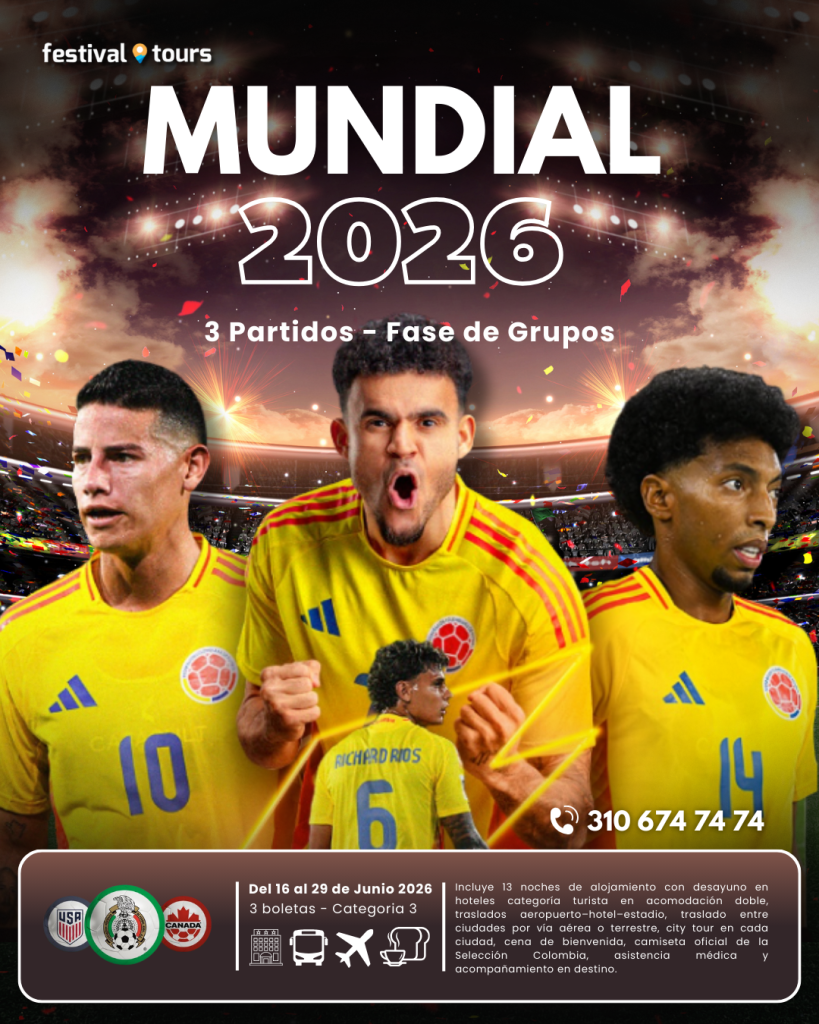 Acompaña a la Selección Colombia en una experiencia única que incluye 3 boletas Categoría 3 para los partidos ante